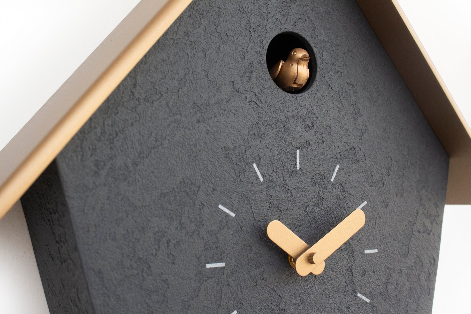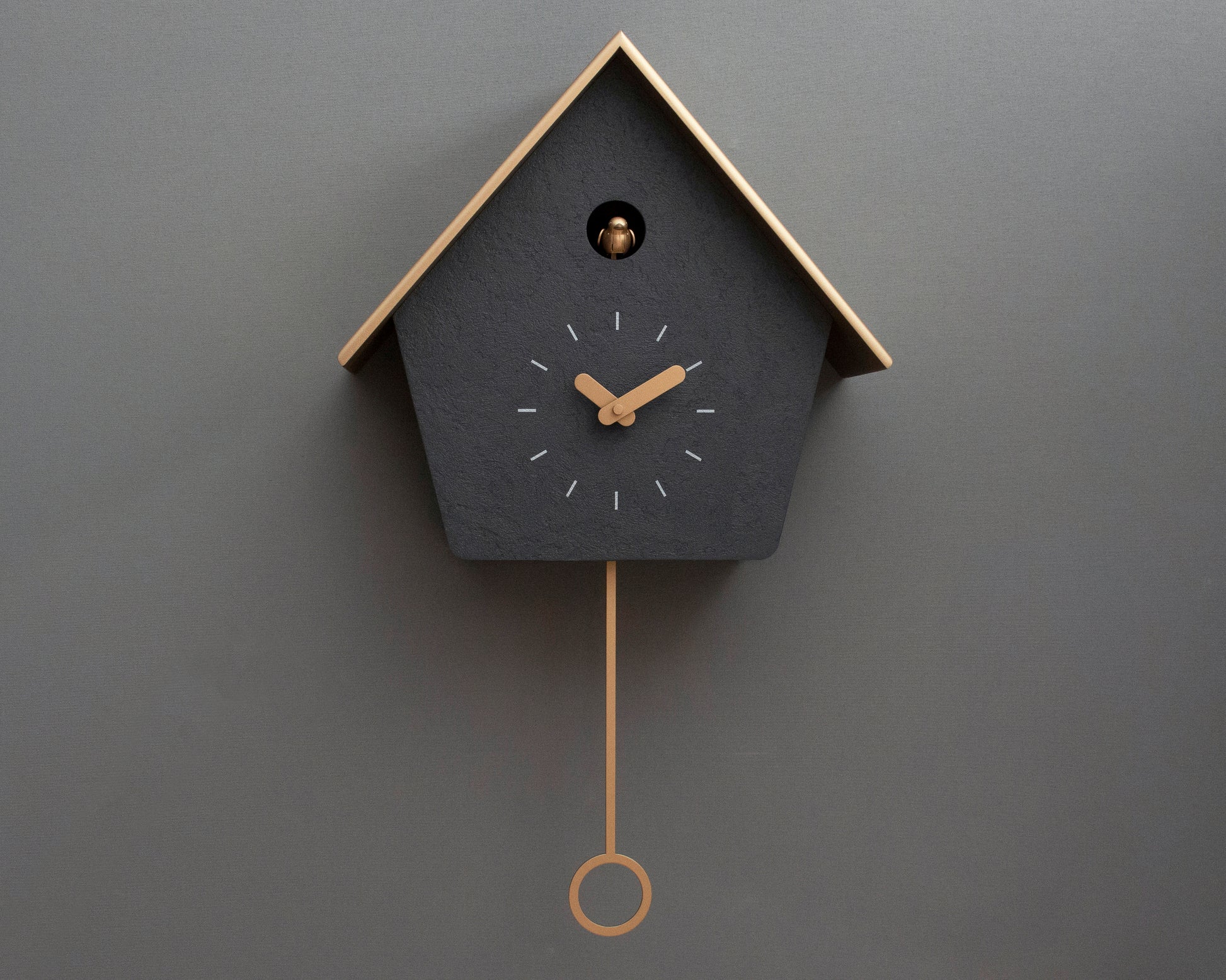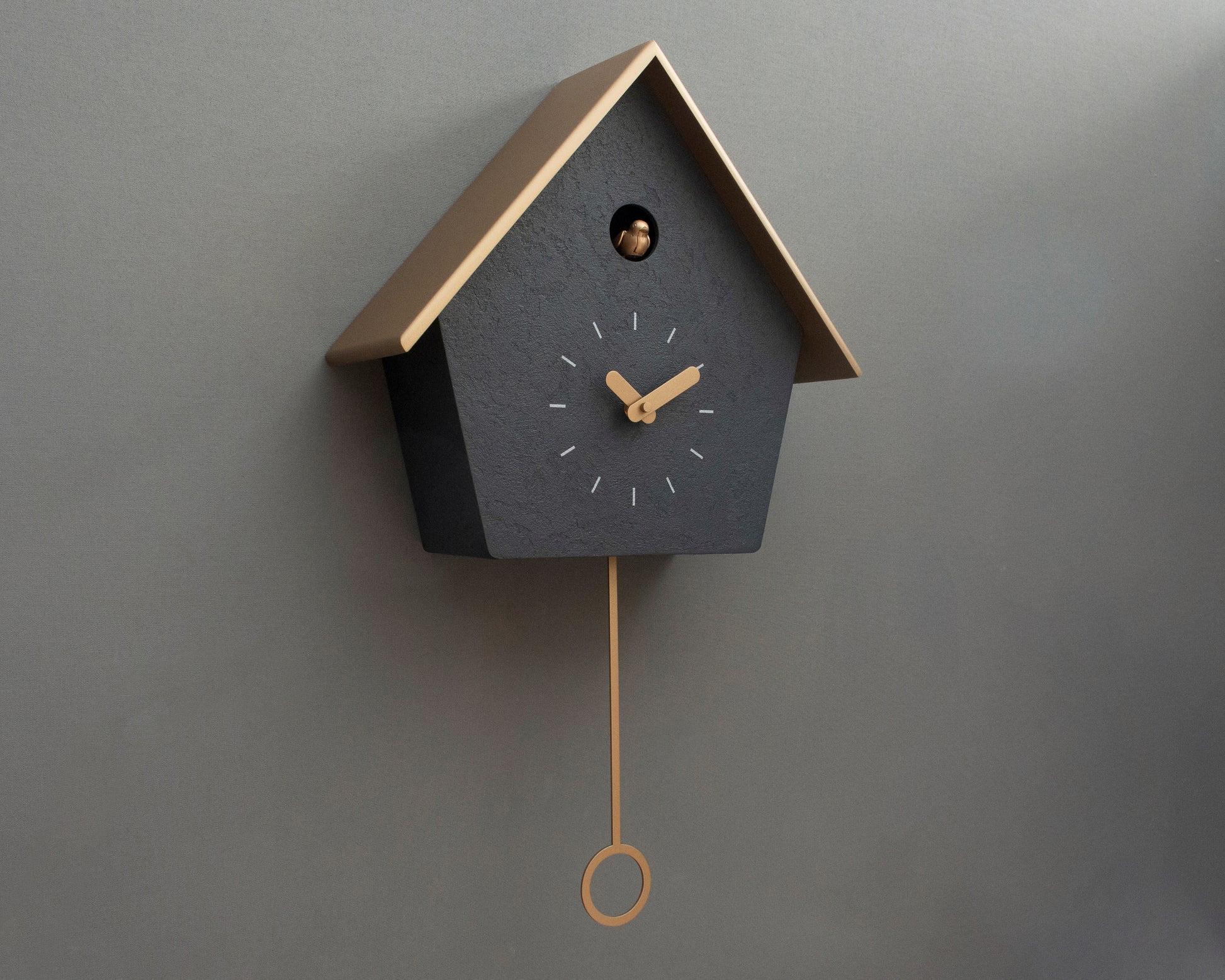 Handmade Concrete Coated Cuckoo Clock – Anthracite with Brass Accents